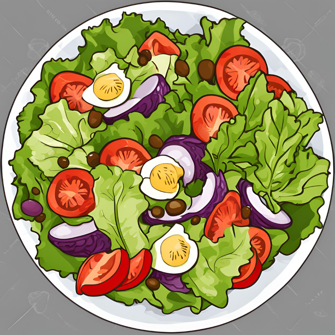 Alle Salate werden mit gemischtem Salat, Tomaten, Gurken, Ei und einem Dressing deiner Wahl zubereitet.